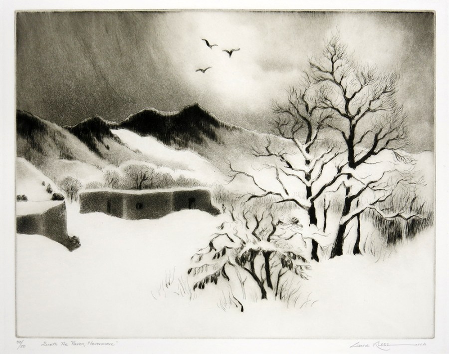 Gene Kloss; Quoth the Raven Nevermore, 1973; etching and drypoint (278×353 mm)
