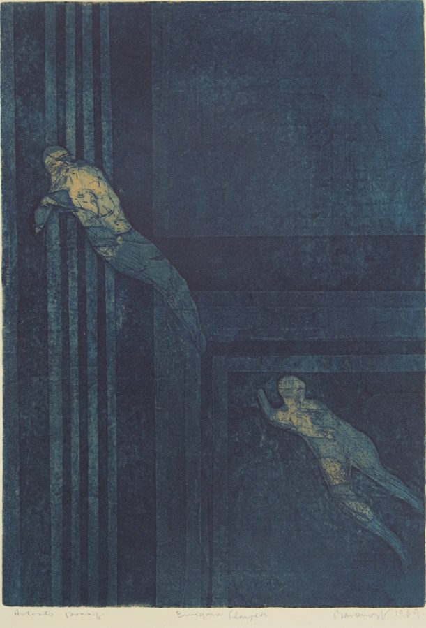 Mort Baranoff; Enigma Players, 1969; intaglio, etching, aquatint; 414x289mm