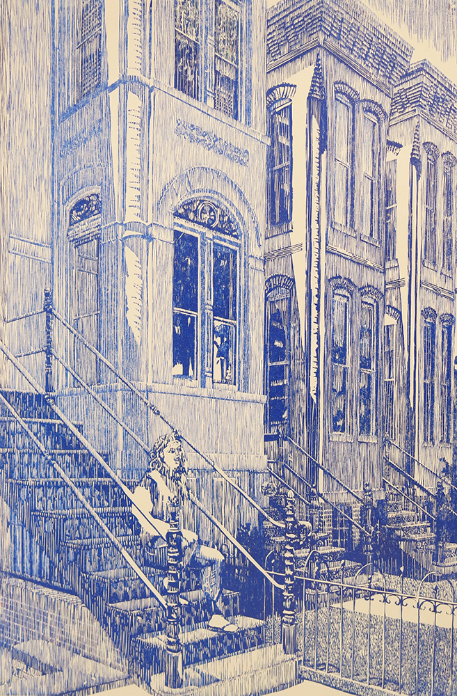 Craig Mindell (born 1955), part of Aubrey on Capital Hill, woodcut 970x910mm