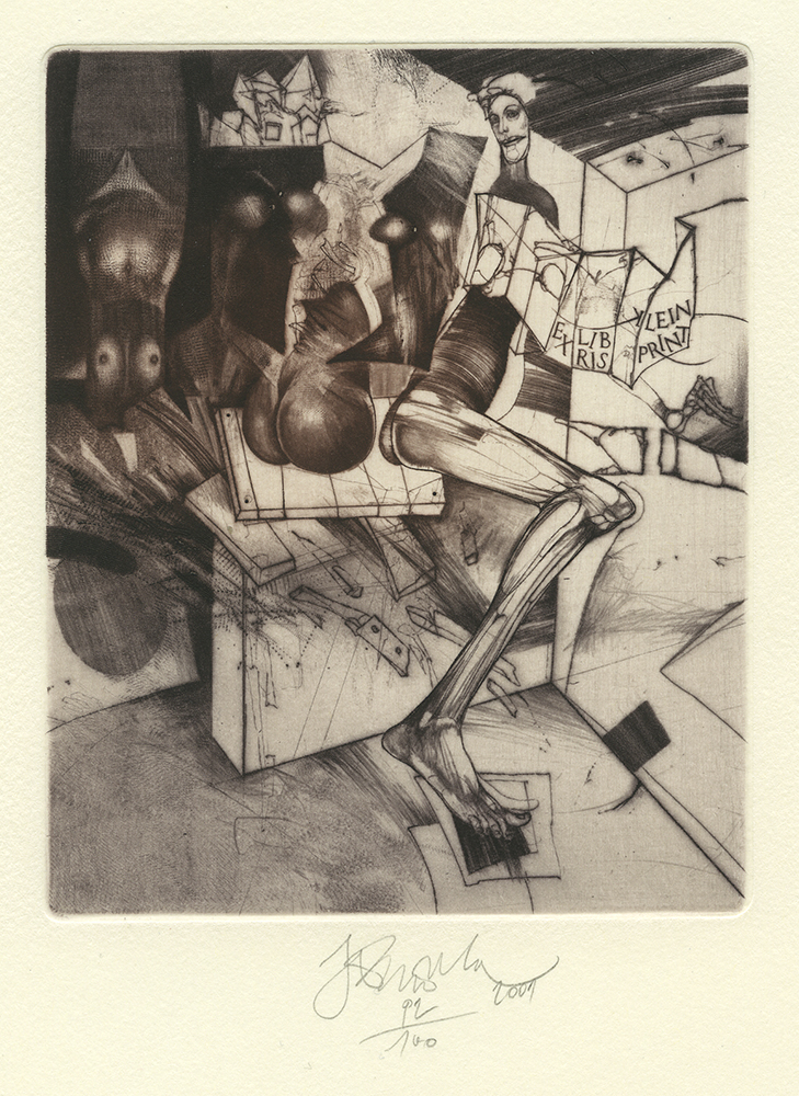 Jiri Brazda (born 1952, Czech); Backwards Town, 2001; engraving, drypoint, mezzotint; 212×147 mm