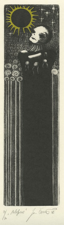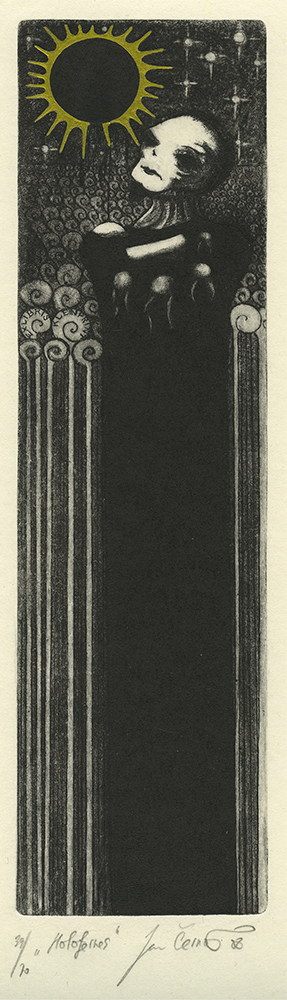 Jan Cernos (born 1982, Czech); Holofernes – Ex Libris kleinprint, 2008; etching, drypoint, mezzotint, hand coloring; 242×63 mm
