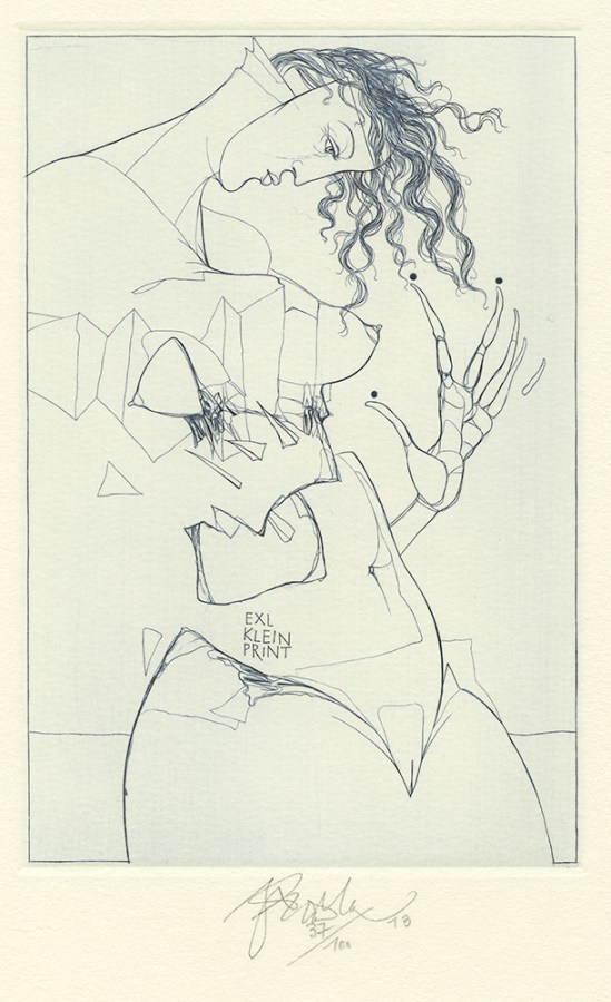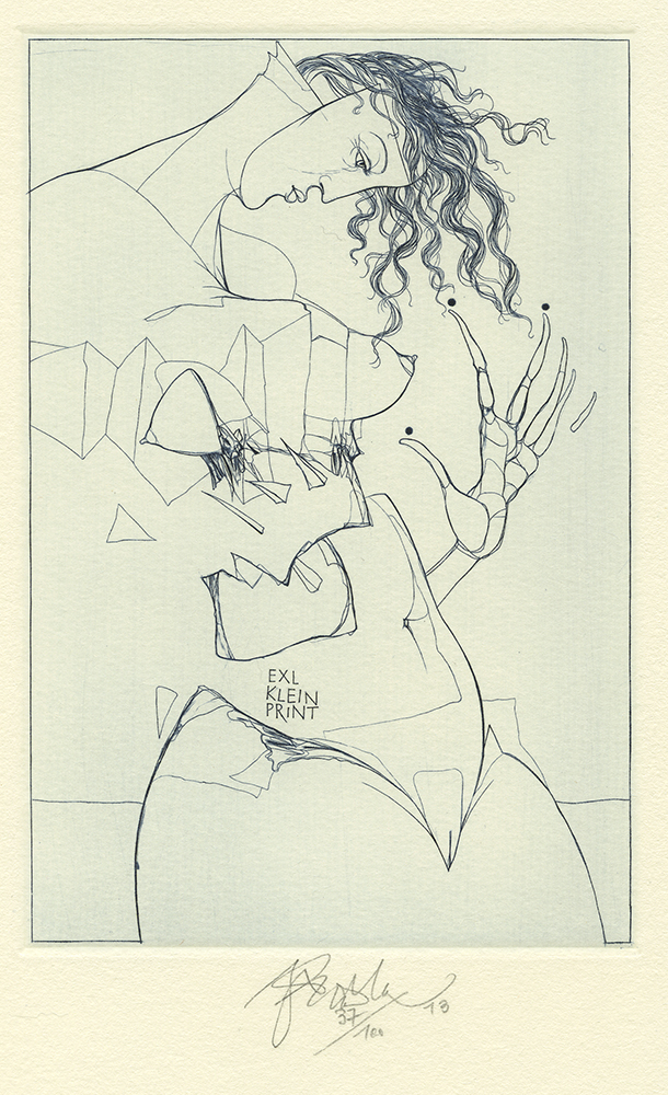Jiri Brazzda (born 1952, Czech); Akt (nude) – Ex Libris kleinprint, 2013; engraving, drypoint, mezzotint; 146×96 mm