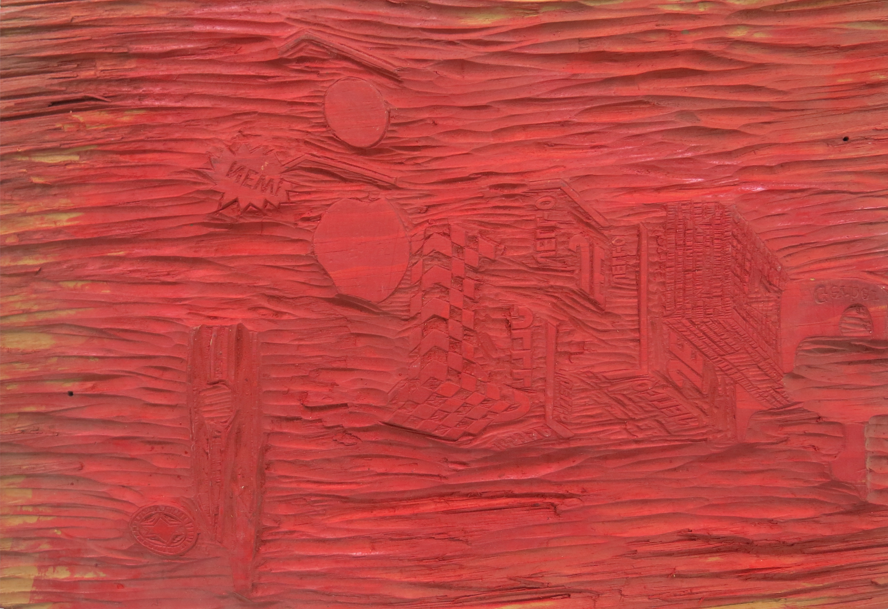 Anthony Lazorko (1935-2017); I Dreamed I Went To the A&P In My BVDs, 1962; wood matrix, ink (437x298mm)