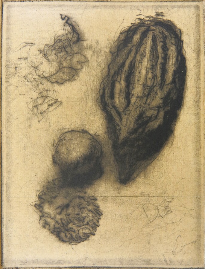 Ellen Verdon Winkler; Small Things, 2015; dry point, chine colle; 101x78mm