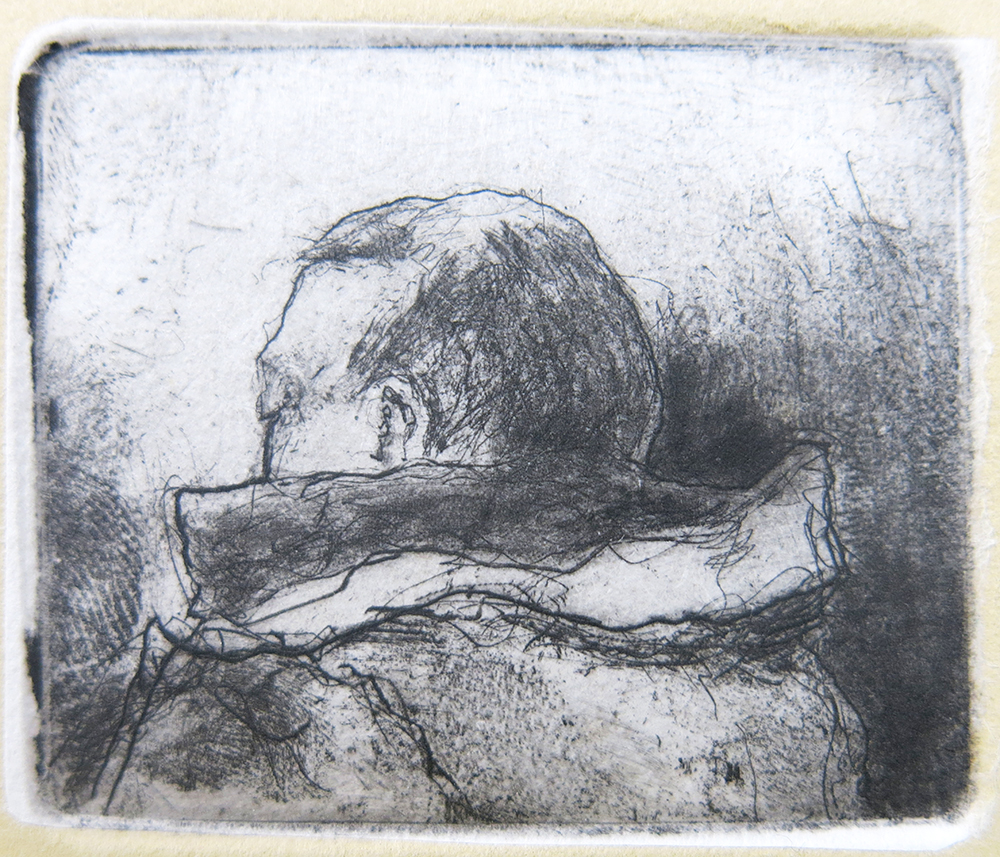 Ellen Verdon Winkler; Study, 2018; etching, dry point, chine colle; 50x58mm