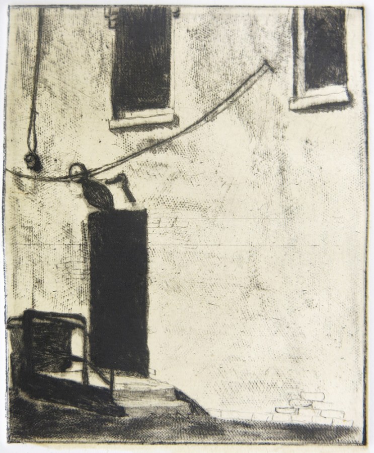 Ellen Verdon Winkler; Side Door, 2015; dry point, chine collection; 125x100mm