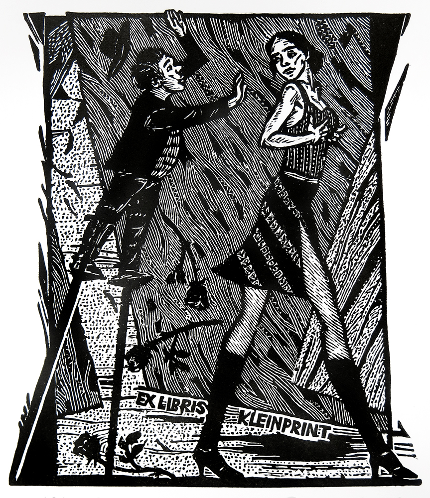 Ella Tsyplyakova (Russian); Food for Long Legged Love – EX LIBRIS KLEINPRINT, 2016; relief cut in plastic; 146×128 mm