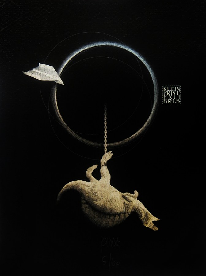 Krzystof Marek Bak (Polish); Black Hole & Dinosaur Extinction – EXLIBRIS KLEINPRINT, 2019; inkjet; 139×104 mm