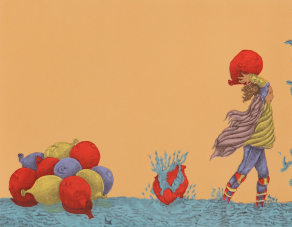 Humbert Saenz; Jugando en Guerra – Pelea de Globos, 2018; lithograph; 280×350 mm