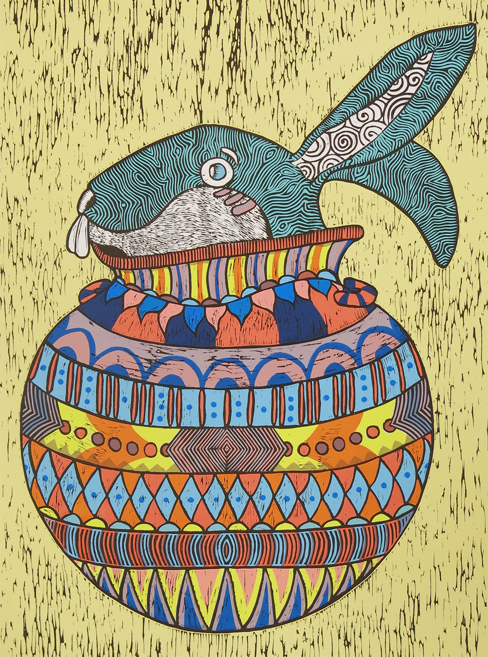 Humberto Saenz; El Liebre Liberada, 2018; screen print and woodcut; 710×532 mm