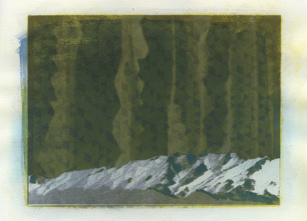 Neal Cox; Timp View no. 27, 2017; Gum bichromate over cyanotype; 282mmx355mm; Monoprint
