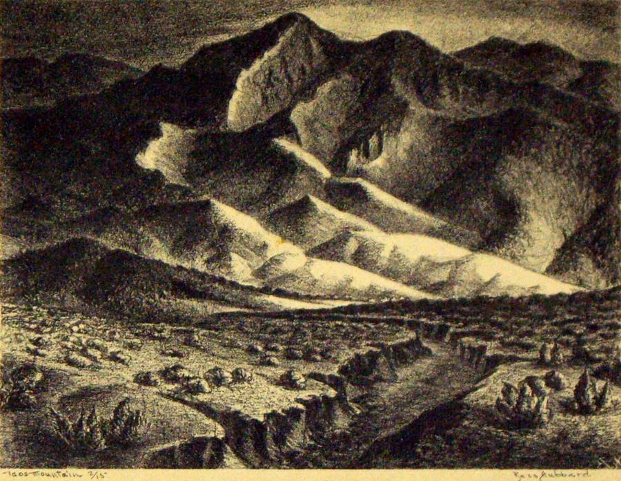 Taos Mountains, 1944; Lithograph; Image: 5 x 7 inches