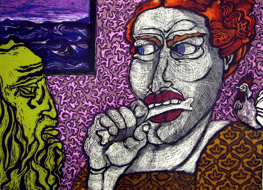 Chicken Banquet, 1999; Woodcut; Image: 16 x 22 1/4 inches