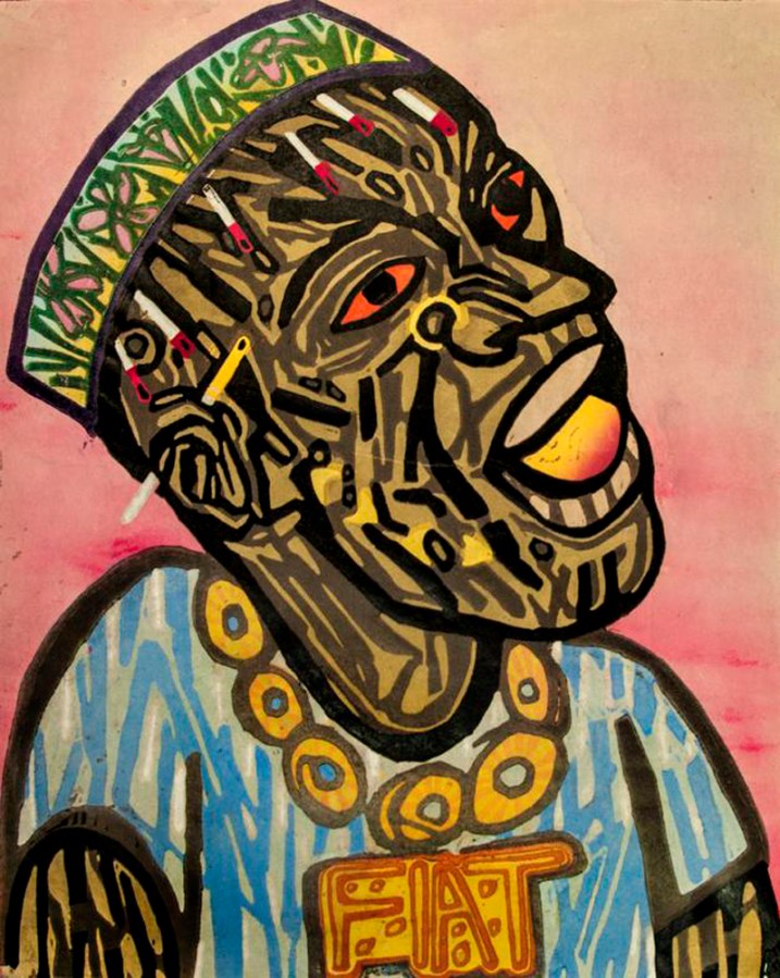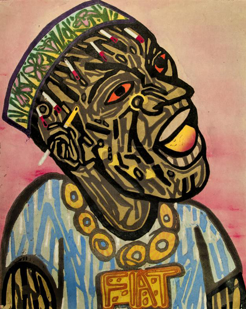 Native Call, 2013; Woodcut; Image: 558 x 456 mm